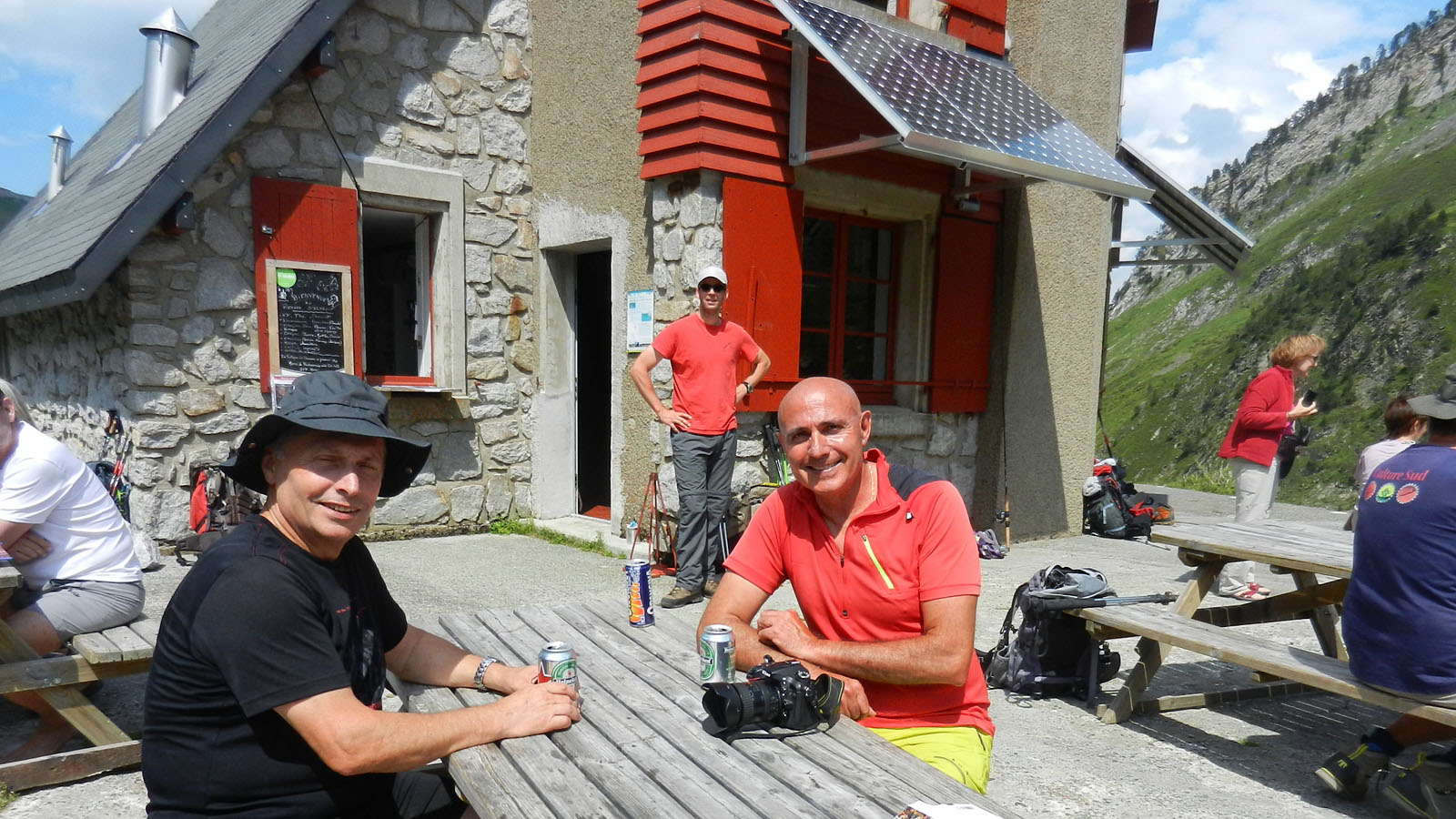 Petite pause à nouveau au refuge d’Ilhéou pour nous rafraîchir un peu et saluer notre ami Gilles (gardien du refuge).