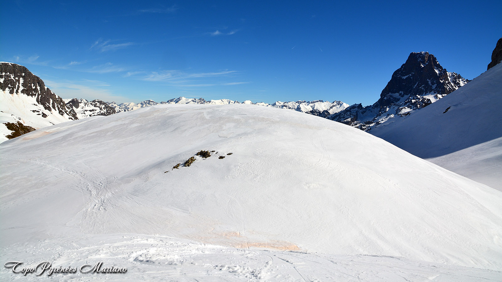 Aujourd’hui nous aurions pu gravir le Pic d’Ayous sans difficulté contrairement en 2011 où nous avions rebroussé chemin à cause de l’état de la neige (beaucoup trop mole) voir Ici. Mais le Pic de Larry est bien plus haut que le pic d’Ayous (+49m) et donc aucun regret.