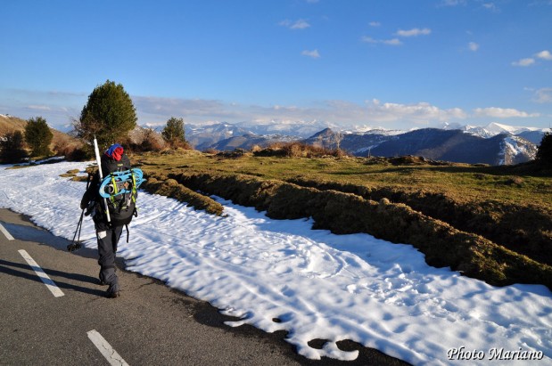 Départ de cette randonnée depuis le col d’Ibarburia (966m), sauf qu’aujourd’hui il nous est impossible de monter même avec les chaînes à neige.