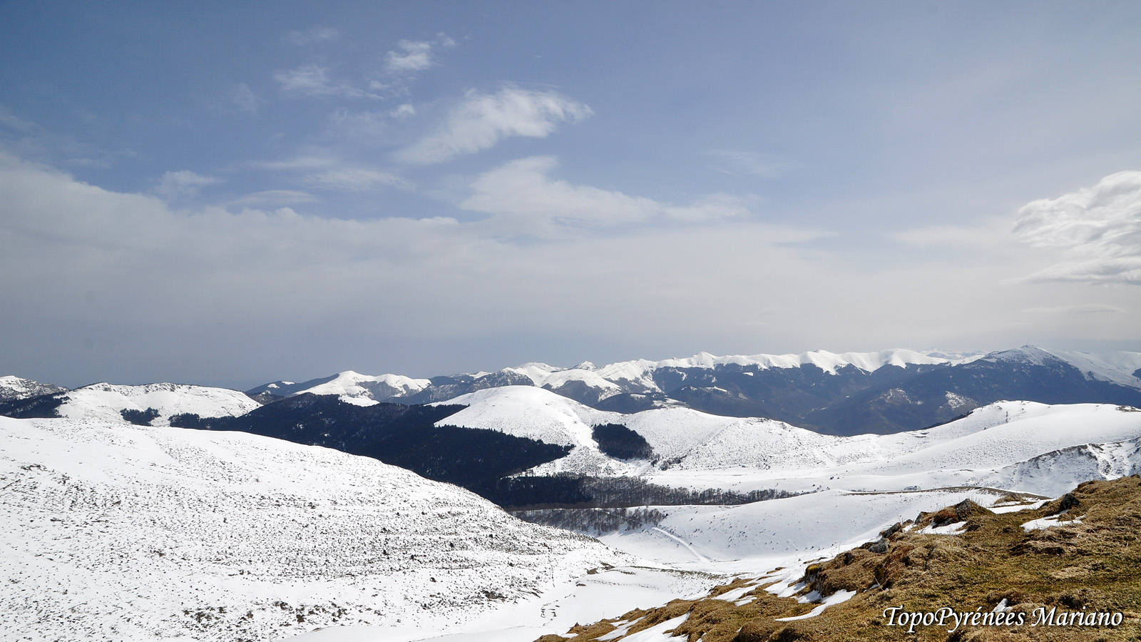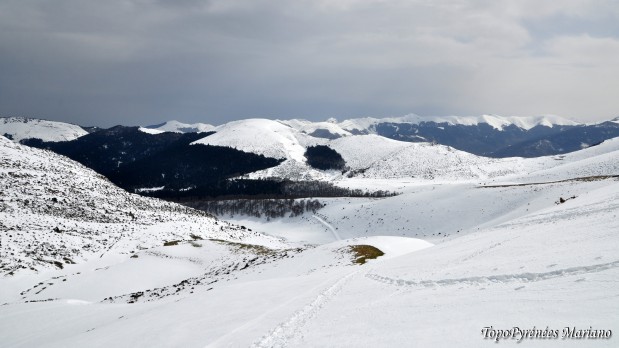 Vue derrière nous sur le Pla de l’Arcouade depuis le Plat de Castet (1363m).