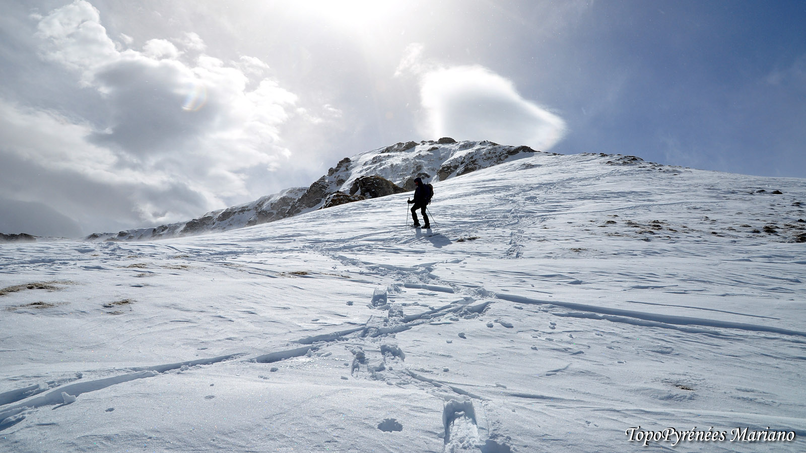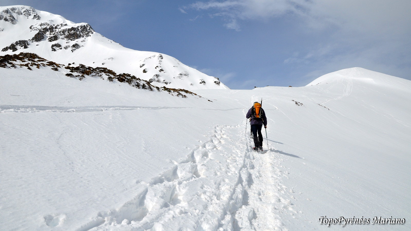 Nous contournons légèrement le pic de Crabe par sa gauche pour éviter la pente raide du début.