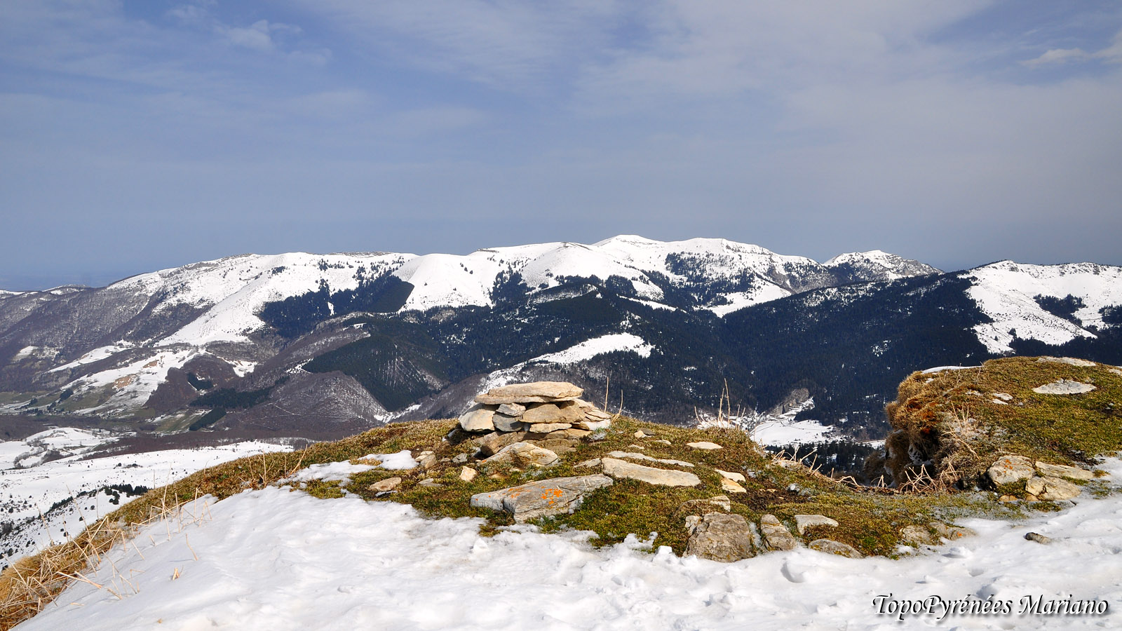 On peut distinguer les gros cairns qui ornent la cime de l’Arbizon (voir Ici)