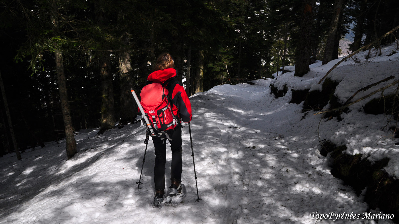 Altitude 1195m, quitter la piste pour rentrer dans le bois.