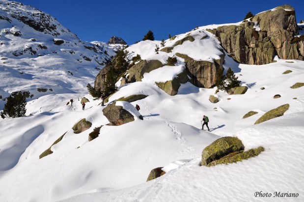 Nous reprenons très vite notre route vers les lacs de l’Embarrat sans avoir encore chaussé nos raquettes.