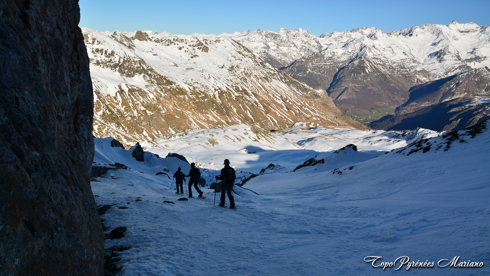 Nous laissons le groupe derrière nous avec en arrière plan, le Pic Long (3192m).