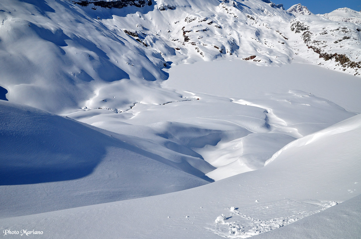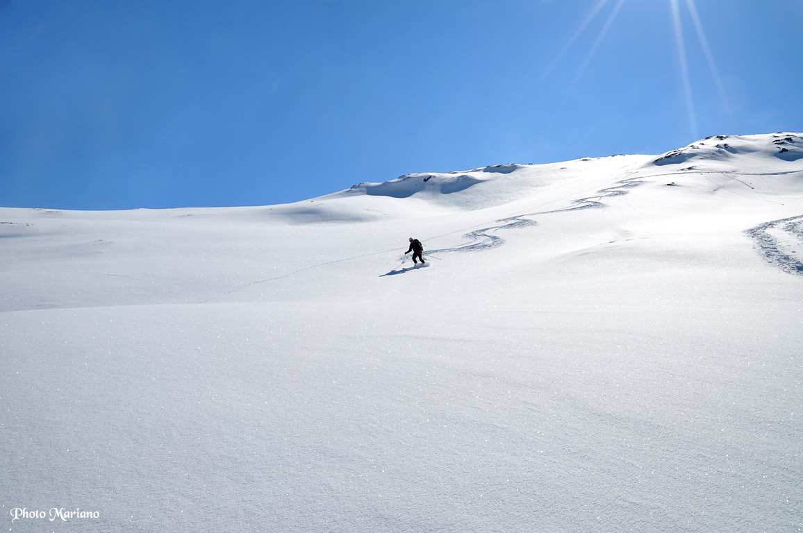 La descente se fait presque en courant tellement la neige est excellente.