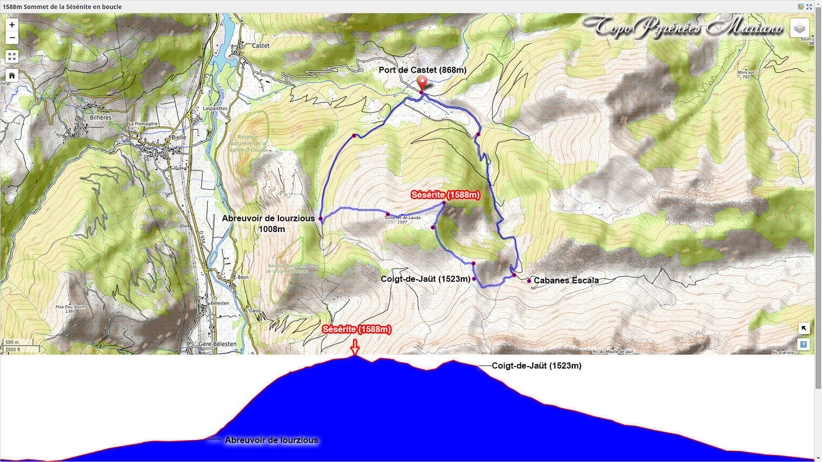 Zoom sur notre point de départ, le Port de Castet (868m).