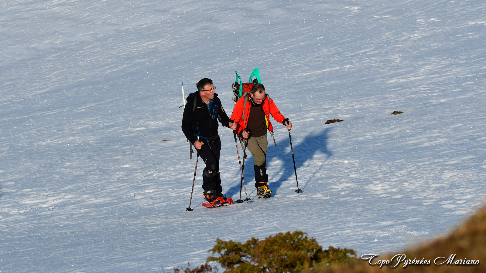 Après une petite heure au soleil et quelques chansons Béarnaises de nos amis de Laruns, retour par le Coigt de Jaüt.