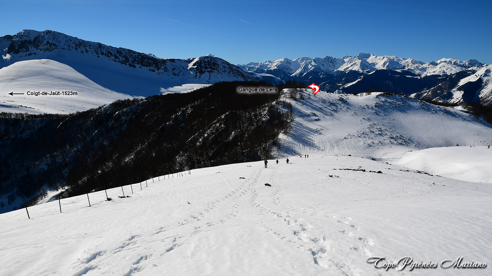 Descendre vers le Sud en direction de la crête boisée de Gangue de Lers.