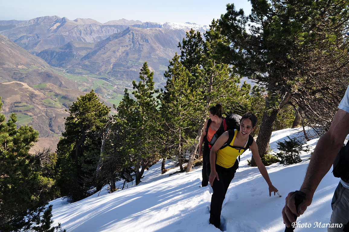Après 30min de galère, nous sortons enfin de la crête boisée avec une belle vue sur le pic d’Anie 2504m.