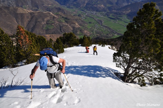 Nous avons bien fait ce matin de prendre l’option de la crête boisée plutôt que de monter par cette pente très raide, en plus avec cette neige instable je n’imagine même pas les efforts que nous aurions dû consentir.