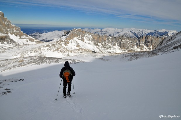 La progression avec les raquettes à neige est un peu pénible, voire même dangereuse dans les dévers,