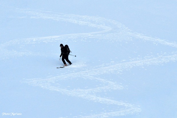 Gérard descend prudemment, car la neige dans ce tronçon n’est pas top.