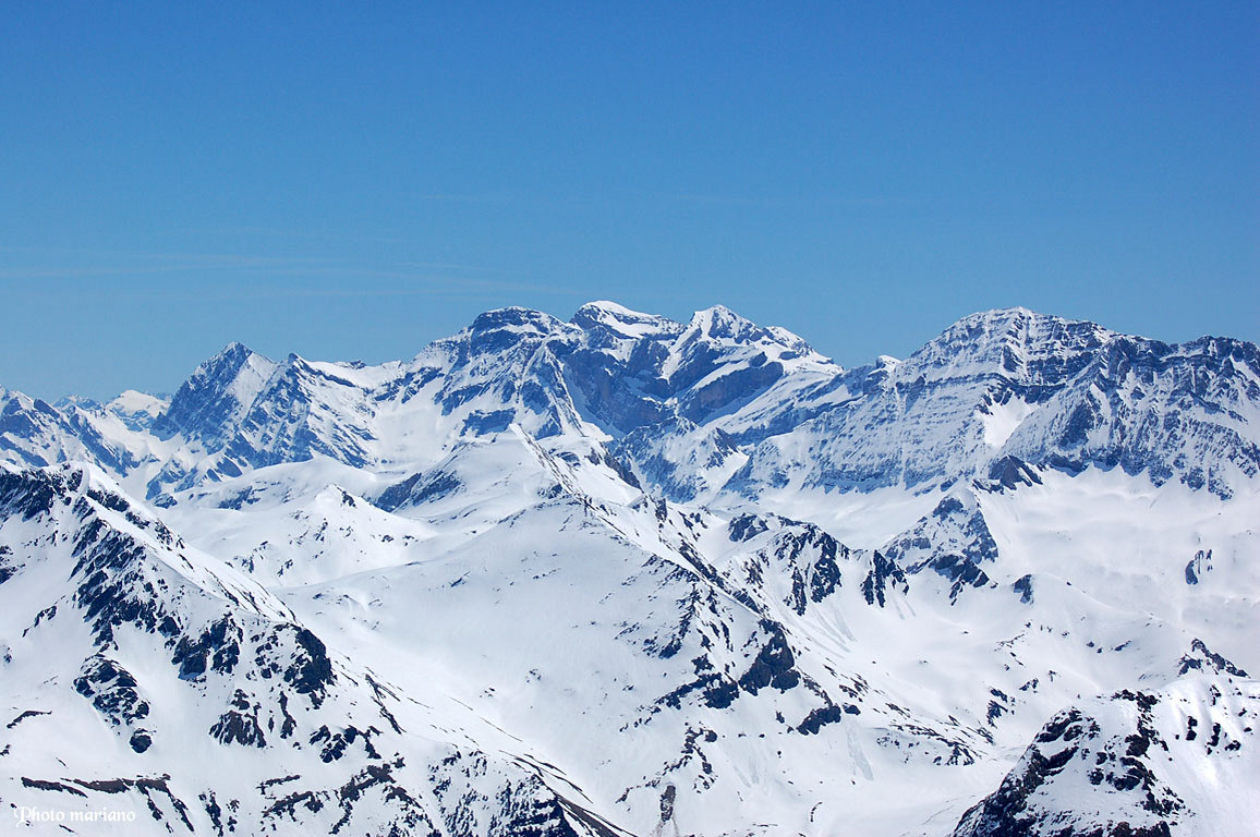 Panorama exceptionnel du Grand Astazou (3071m) au Taillon (3144m) avec au milieu le cirque de Gavarnie. Le Marboré (3248m), le Cylindre (3328m), le Casque (3006) et le Mont Perdu (3355m).