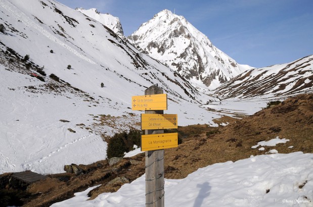 Derrière nous, le pic du Midi de Bigorre avec son observatoire le plus haut d’Europe (2872m).