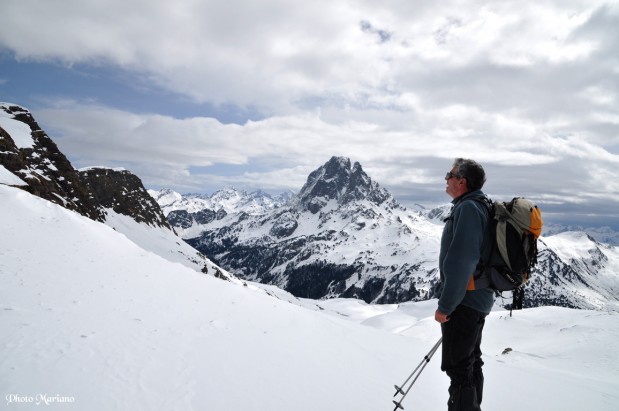 Nous sommes montés avec un ciel brumeux et quand nous sommes arrivés au refuge d’Ayous le ciel s’est dégagé laissant le Jean Pierre jouer avec les nuages. Magnifique ! Après une longue pause sur la terrasse du refuge nous ne sommes pas montés au Pic d’Ayous mais redescendu dans une neige de printemps un peu molle.
