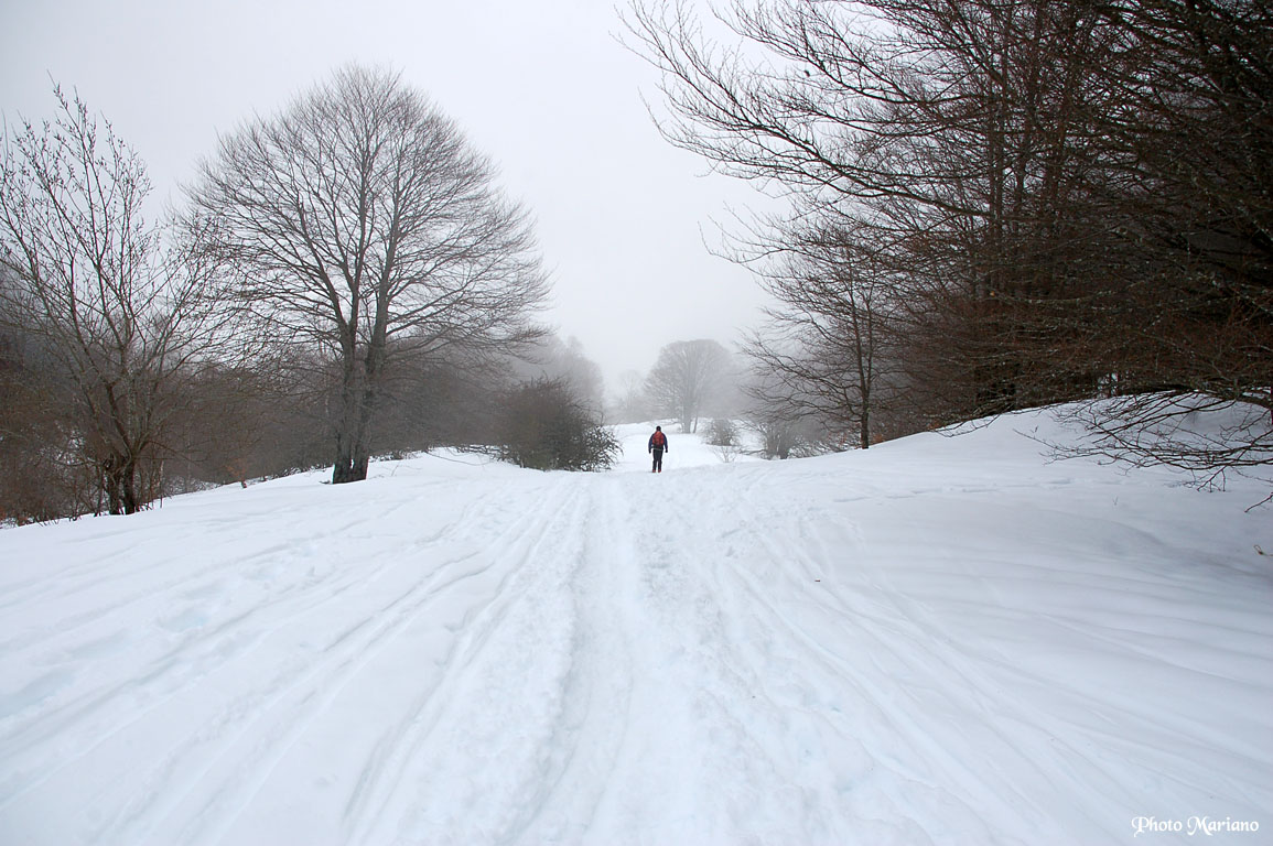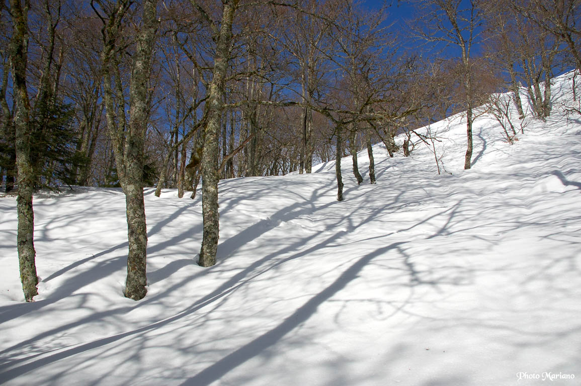 La neige est molle par endroit et malgré les raquettes, je m’enfonce jusqu’aux genoux.