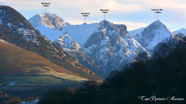 Les sommets du Mustayou (1206m), Souturou (1183m), Biscacou (1168m) et Trône du Roi (1266m).