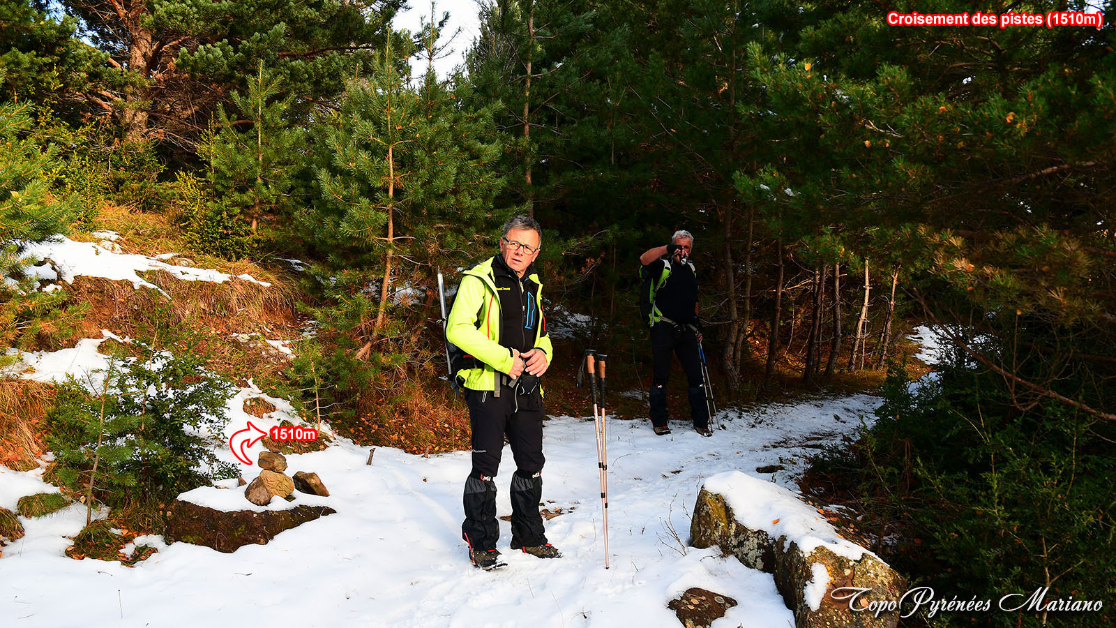 Bifurcation des pistes (1410m); prendre la petite piste qui rendre dans la forêt (à droite).