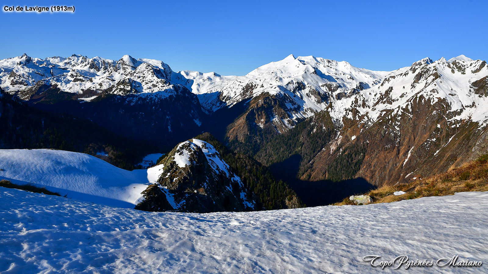 Une très belle sortie hivernale avec un sommet que j’adore. Vous ne trouverez pas un meilleur endroit pour admirer et apprécier au calme le Pic du Midi d’Ossau (2884m). Il faut tout de même faire attention pour ceux qui voudront grimper en haut du Lavigne, lorsque les conditions d’enneigement sont difficiles, ne prenez pas de risques, la montée au Pic Lavigne est réservée pour les Randonneurs aguerris sachant marcher avec des crampons et surtout savoir comment utiliser un Piolet en cas de glissade.