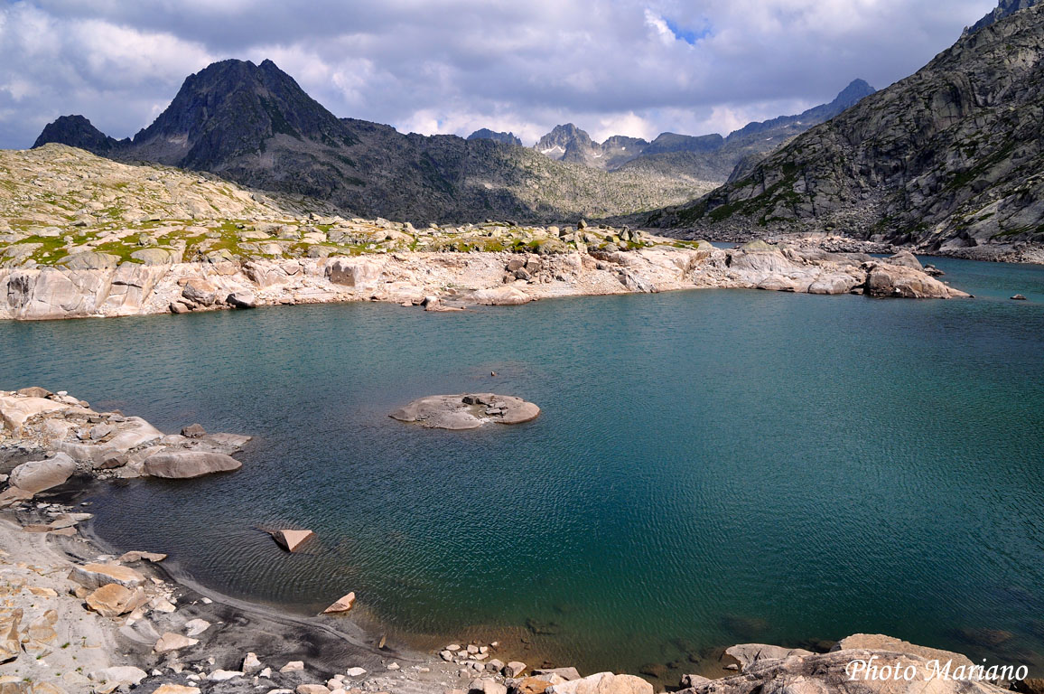 Lac Tòrt de Rius avec à gauche le sommet le Tossau de Mar 2751m et à droite le Bessiberri Nord 3014m.