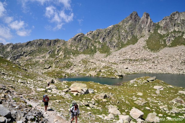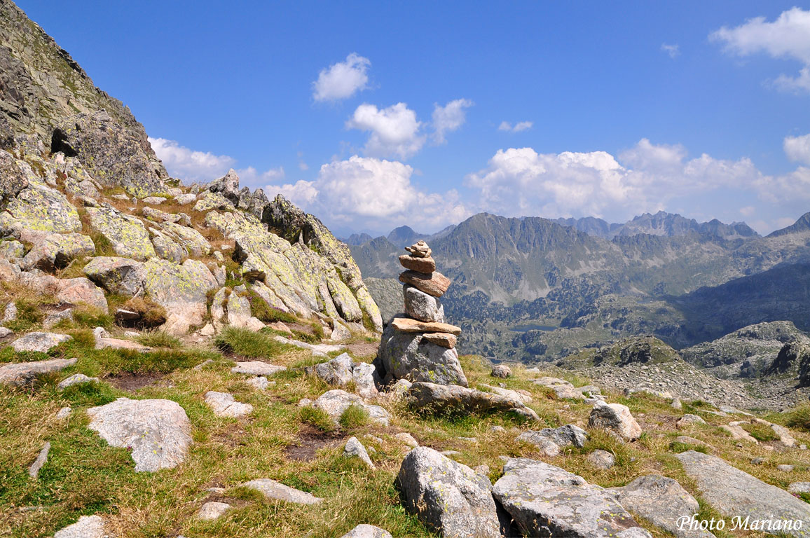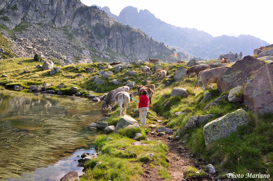 Cette étape nous fait rentrer dans la partie la plus large des Pyrénées, entre les massifs de granit qui forment le squelette de la chaîne Orientale et ceux qui forment la chaîne Occidentale, s’ouvre un large détroit géologique. Nous sommes dans les Encantats où nous attendent des lacs à foison, il y en a partout !