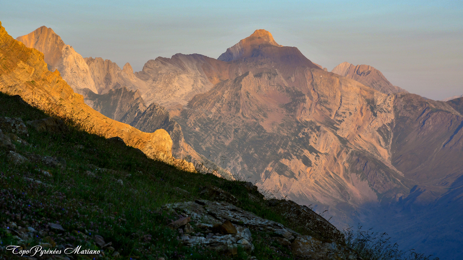 Les premiers rayons de soleil sur le massif de la Tendeñera (2853m).
