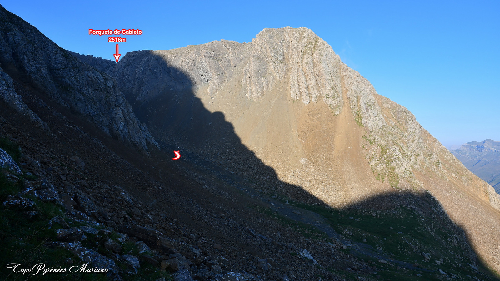 la sente très bien marquée file vers le Sud-S.O jusqu’à la Forqueta de Gabieto.